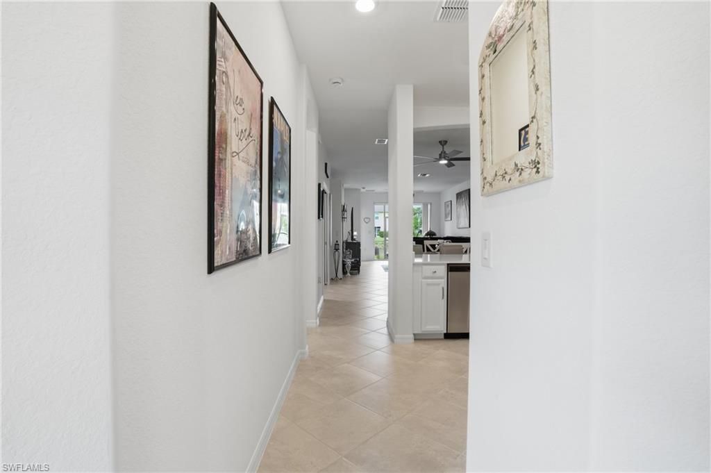 Located in the highly sought after Orange Blossom Ranch, this immaculate Magnolia model villa offers one of the best values currently available in the community. Featuring 3 full bedrooms, 2 bathrooms, and a bright open layout, this home is completely move in ready and shows like new.Inside, you will find the newest style finishes buyers are looking for, including white cabinetry, white countertops, light gray tile flooring throughout, and a clean modern white interior. With no carpet anywhere in the home, the space feels fresh, open, and easy to maintain. The Magnolia model is known for its larger kitchen layout, making it ideal for entertaining, everyday living, and maximizing the open concept design.The home is perfectly positioned to capture an incredible long lake view, creating a peaceful backdrop from the main living areas and lanai. Whether you are enjoying your morning coffee or winding down in the evening, the water view truly sets this property apart.Located in one of Naples' most amenity rich communities, Orange Blossom Ranch offers two resort style pools, a spa, fitness center, tennis courts, pickleball, basketball, bocce, playgrounds, fishing pier, clubhouse, and more. Residents also enjoy convenient access to shopping, dining, and Publix just outside the community.If you have been waiting for a clean, updated, move in ready villa with a great view and priced to sell, this is one you do not want to miss.